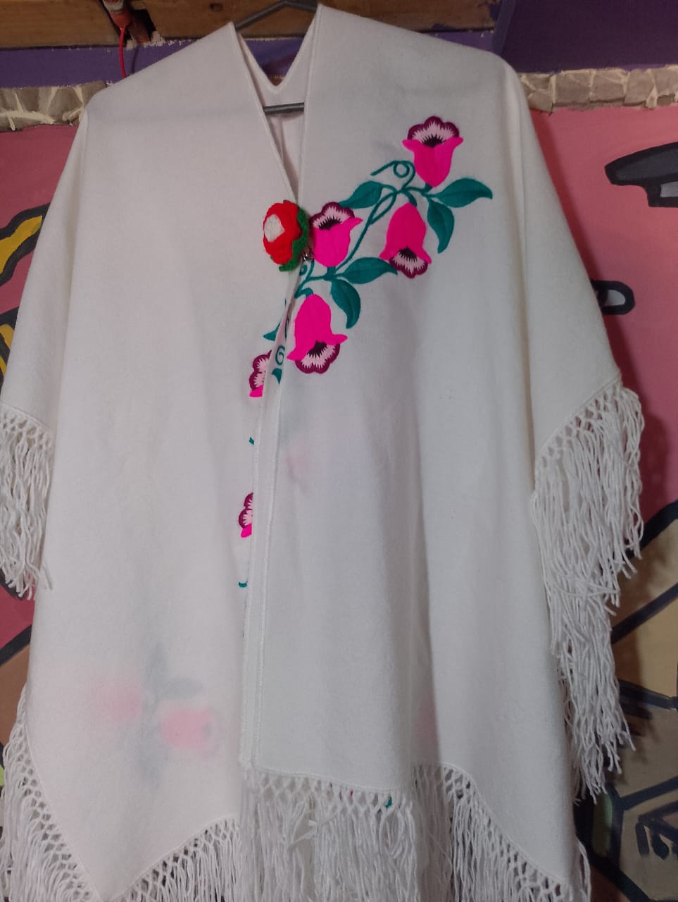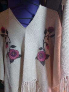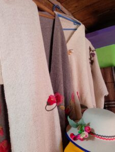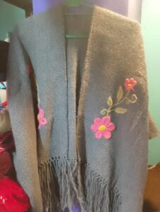 Cada pieza es una creación original, confeccionada con hilos finos y rellenos de distintos grosores, según el diseño y la intención artística. Los rebozos destacan por sus coloridos patrones: corazones, flores y figuras dobles, todos tejidos con precisión y rematados con delicadas puntillas hechas con aguja crochet.